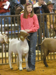 We went up to Tolar to see Lauren show her goats at the Hood 'County Livestock Show. The weather was a little on the cool side but not as bad as last year. At least we had sunshine during the day to help with the temp. She did really well in the light weight class placing 4th overall. In the heavy weight class she did not place. The auction was held on Saturday and she was able to get 900.00 in bids plus since it was a premium sale she keeps the goat and resold it to a lady form West Texas who is showing it in June. She made another 250.00 there and then all her grandparents were chiping in some for her. Before the show she was going to just do rabbits next year now she wants another goat also. It helps to place and get in the money.